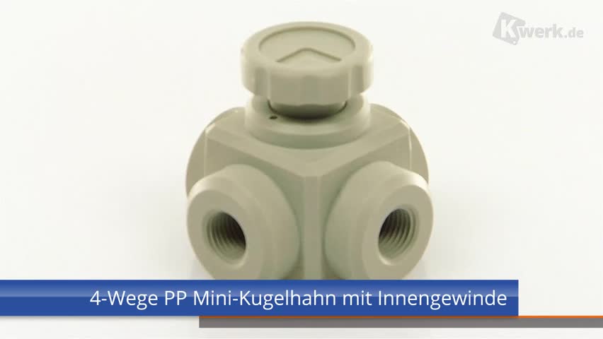 4-Wege PP Mini-Kugelhahn mit Innengewinde - L-Ausführung - |
